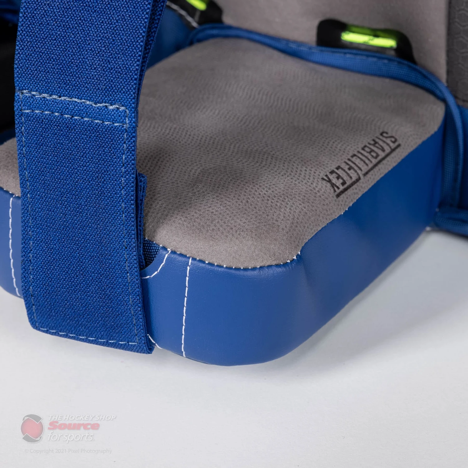 The pads get the same StabiliFlex knee block seen on the Hyperlite pad. First seen in the Ultrasonic line, this design creates an ultra stiff knee block that’s built right into the core of the pad. There are many advantages to this design mainly that the goalie is able to drive straight through the knee block into the butterfly without losing any energy in the process.