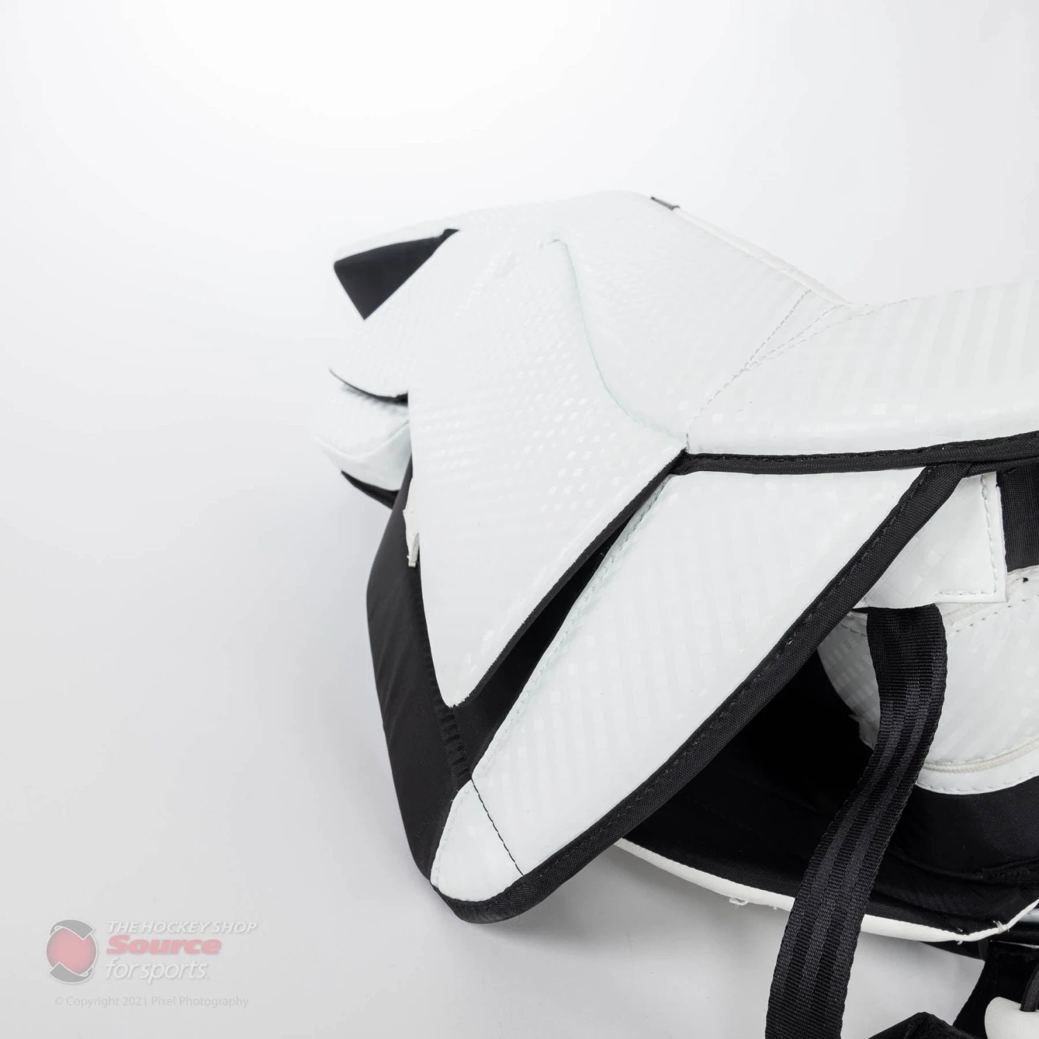 The OPTiK X2 leg pad features a flexible core internal construction. This core design allows the pad to flex where it needs to, while remaining rigid in key areas for hard rebounds and seal along the ice.