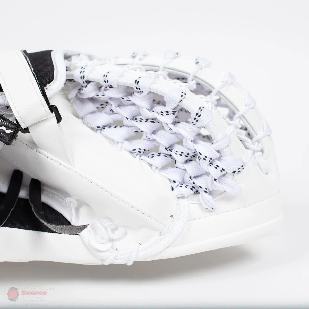 A favourite in the goalie world of trappers is back again in the 4th rendition of the Extreme Flex line. The CCM E-flex 4.5 trapper brings improvements without changing much on the glove worn by the masses. With a stock double T pocket, Injected molded PE thumb protection and quick strap release, this glove stays true to the features that popularized it in the first place.
