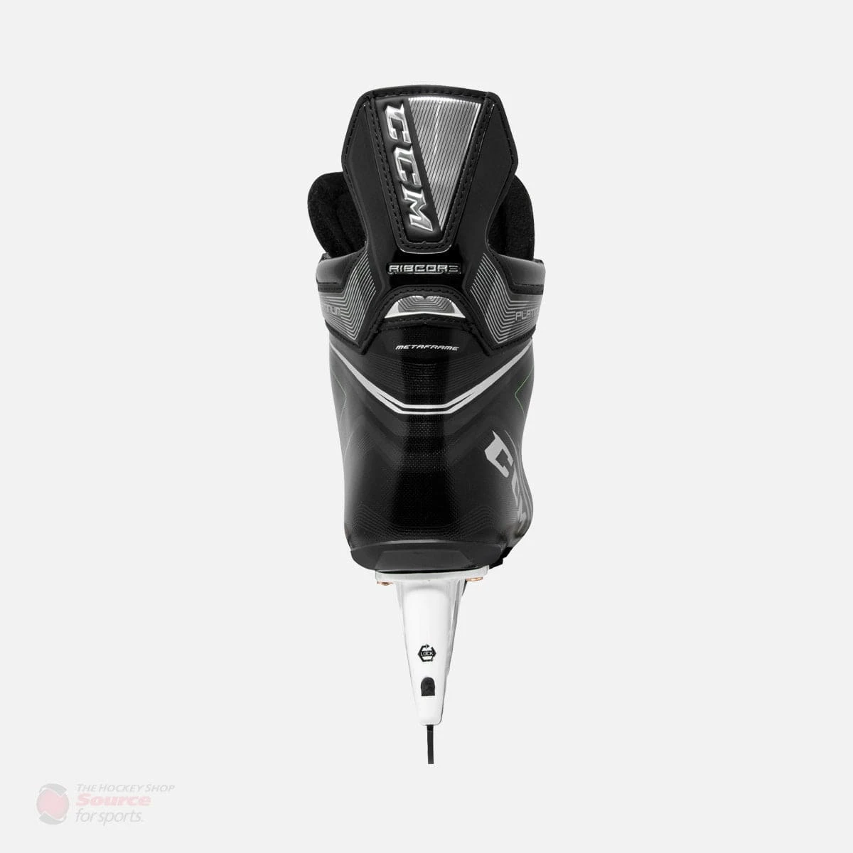 The graphic has a customary Ribcore look to it. CCM has revamped their graphics with the logo stapled in the middle of all of their skates. The Platinum has a glossy black coat with classic Ribcore green accents to pull the boot together nicely.