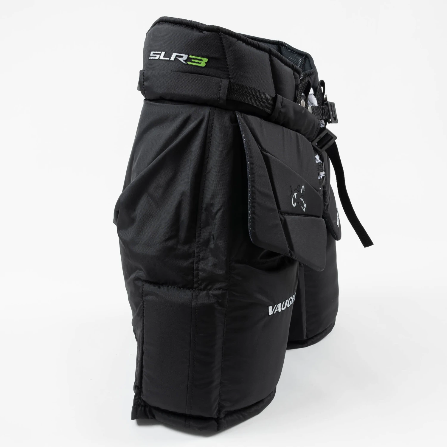 The Vaughn Ventus SLR3 Junior Goalie Pants come in Black at retail and the following sizes: Small, Medium, Large, X-Large.