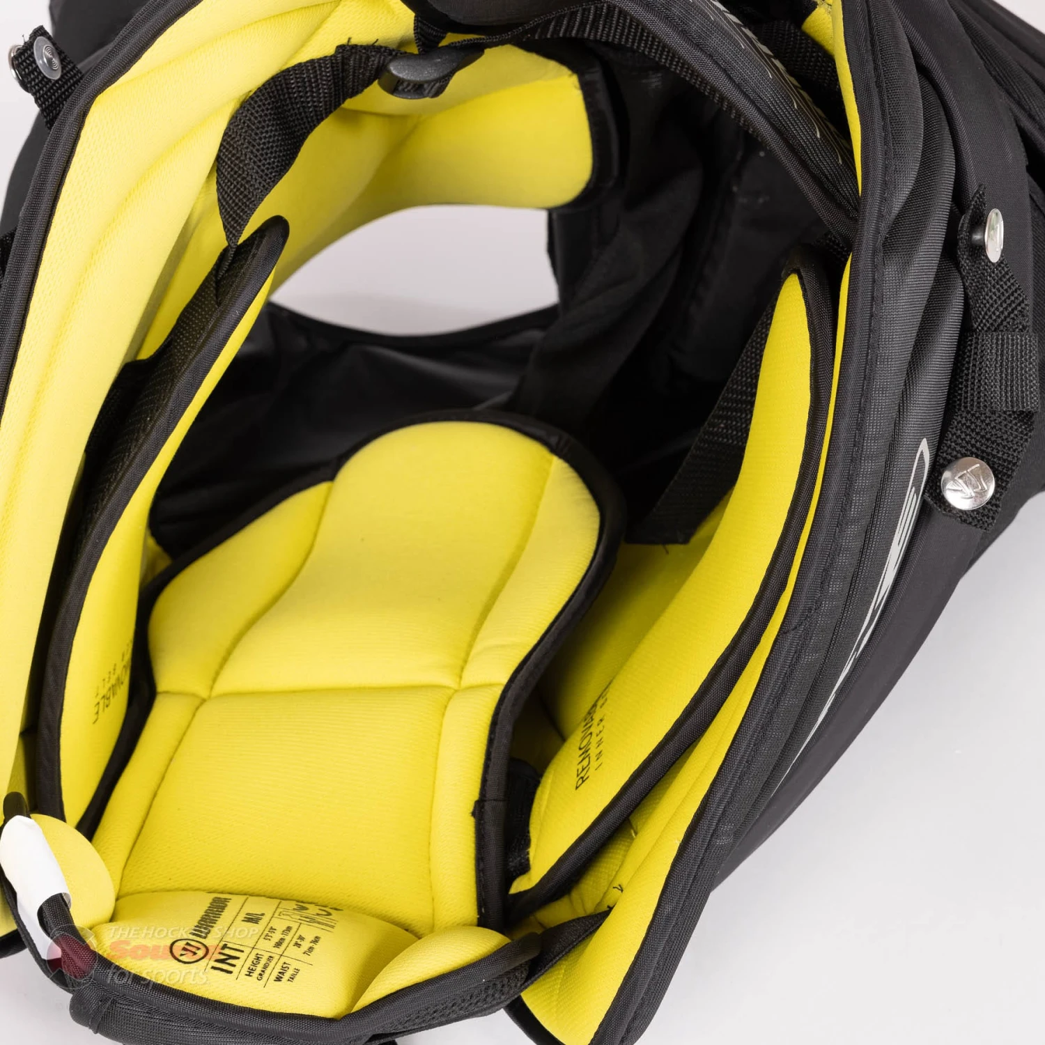 The Warrior Ritual X3 E+ INT Goalie Pants come in sizes S/M, M/L, and L/XL. For colors, the X3 E+ pant resembles the previous model, black on the outside with Light grey logos and volt lining on the inside.
